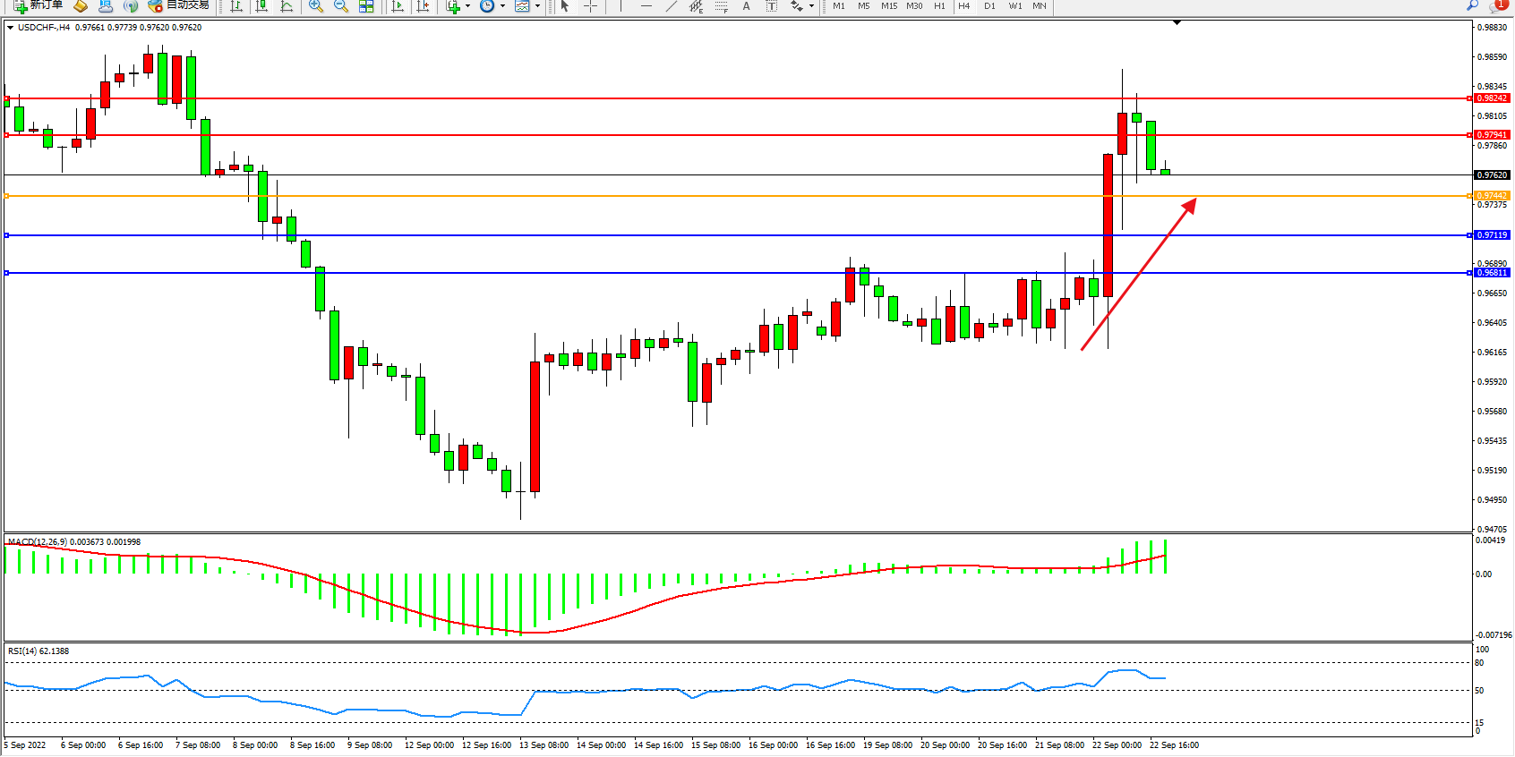 美元兑瑞郎维持0.97620附近震荡,瑞士央行如期加息75个基点从-0.25%升至0.50%,结束持续8年的负利率政策,利率水平达2008年12月以来新高,但瑞士央行下调经济增速预测。