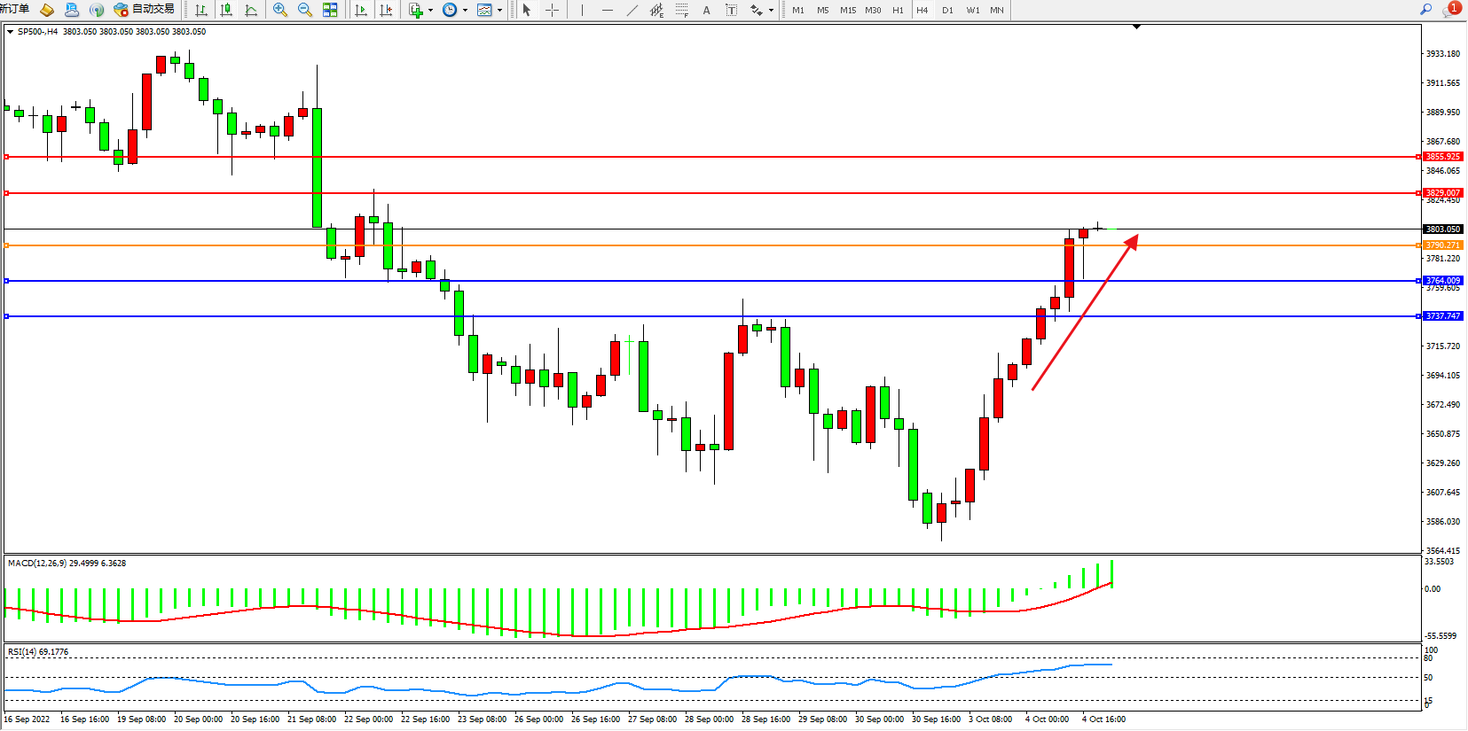 标普500指数10月4日(周二)收盘上涨112.30点,涨幅3.05%,报3790.73点;美国8月JOLTs职位空缺数量的降幅超过预期,降至一年多以来的低点,表明劳动力需求虽然依然强劲,但正在放缓。