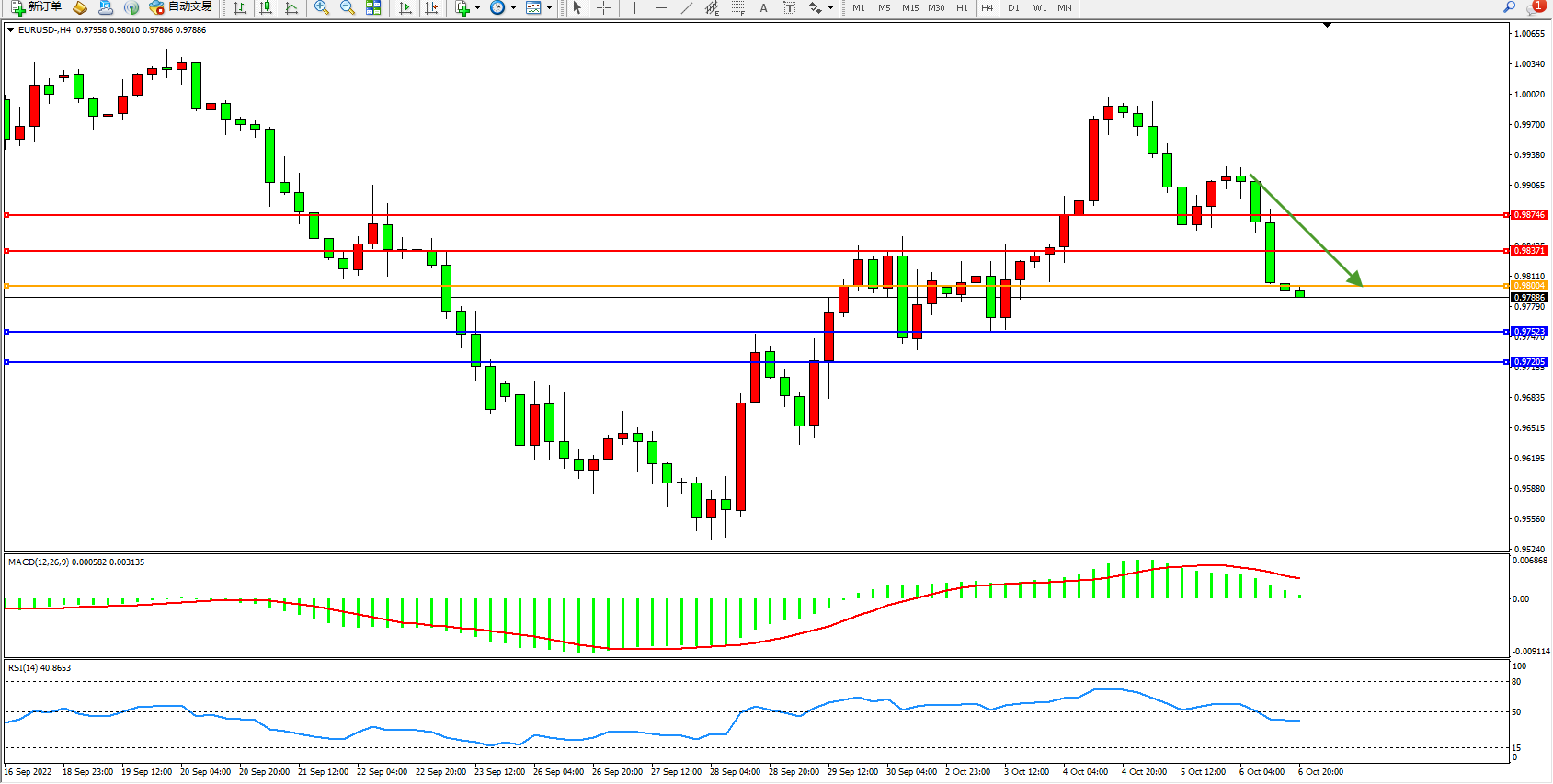 欧元兑美元维持0.97886附近震荡,欧洲能源危机的不确定性可能仍然很高,这是欧元兑美元EUR/USD在未来一段时间内可能会低于而不是高于平价水平的原因。