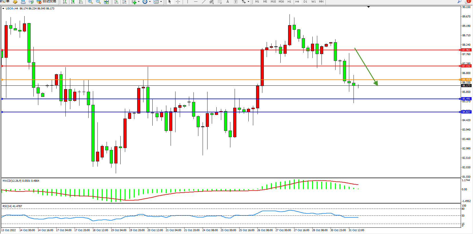 4小时图看:空头动力维持震荡下行,短期跌势或将延续,市场整体开始不断下行中,MACD指标处于多头区域维持整理下移至0轴线附近徘徊,RSI指标处于50均衡线下侧弱势整理;