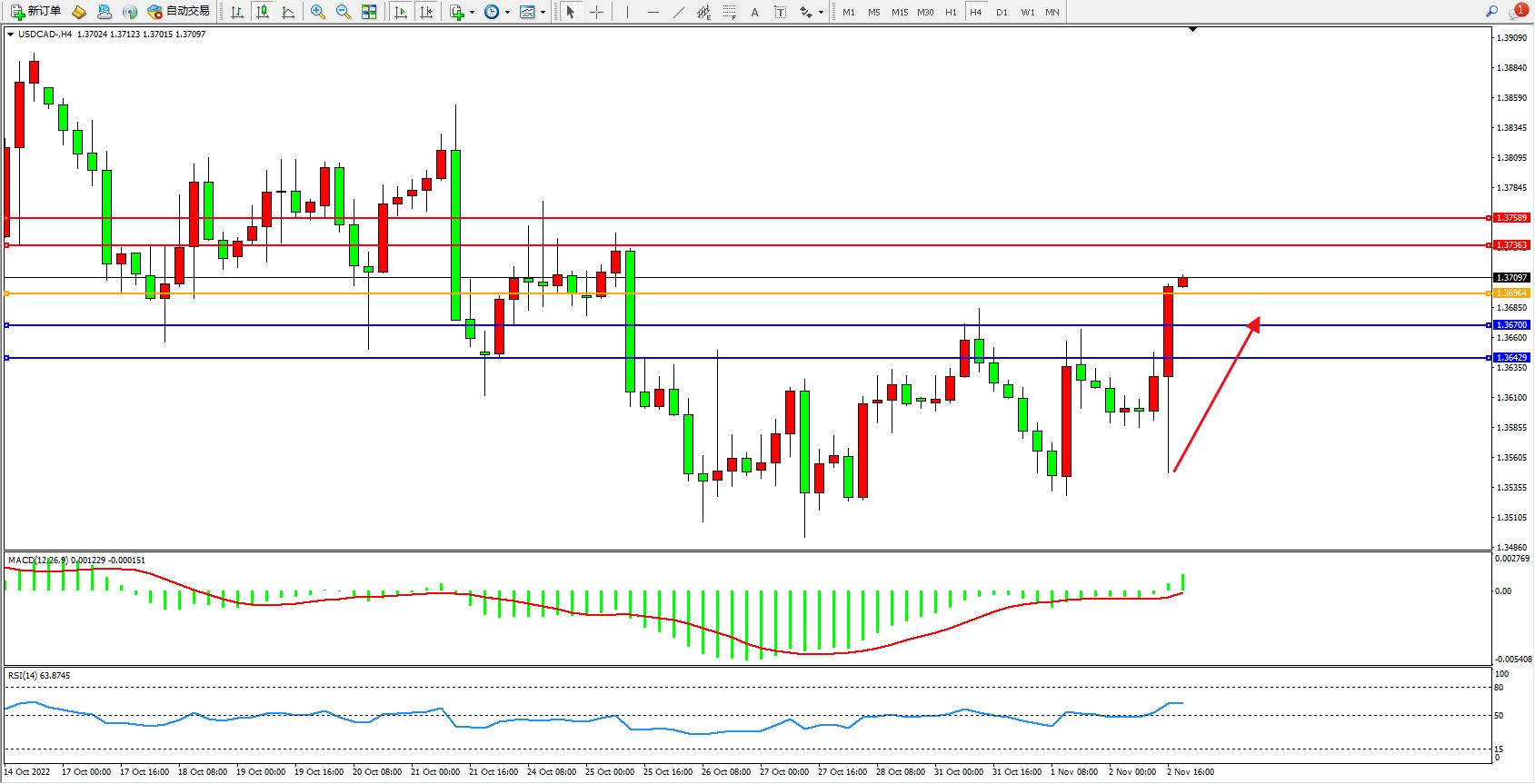 交易策略:1.36964上方看涨,目标1.37163、1.37589