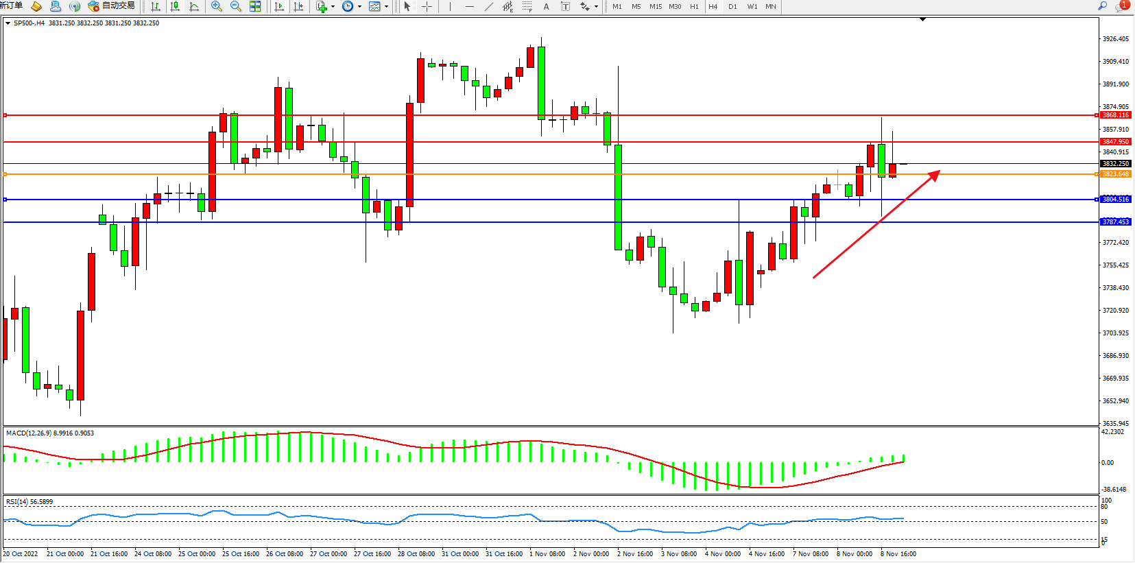 标普维持500指数11月8日(周二)收盘上涨21.94点,涨幅0.58%,报3828.74点;高盛股票团队下调了到2024年底标普500指数的盈利增长预期,理由是有太多不利因素可能会继续拖累企业利润率。
