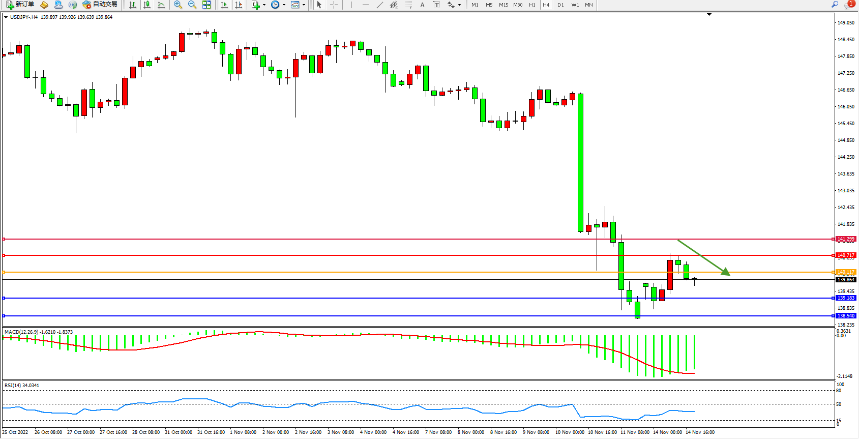 美元兑日圆维持139.863附近震荡,日本央行行长黑田东彦:本财年日本的消费者通胀率将加速升至3%左右,但随着全球大宗商品价格下跌,降低进口成本推动的通胀压力,明年将放缓至1.5%左右。