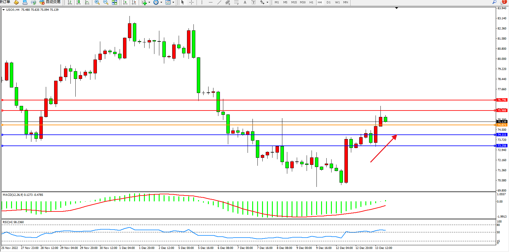 原油维持75.139附近震荡,欧佩克月报将2022年全球经济增长预测从2.7%上调至2.8%。将2023年全球经济增长预期维持在2.5%不变。