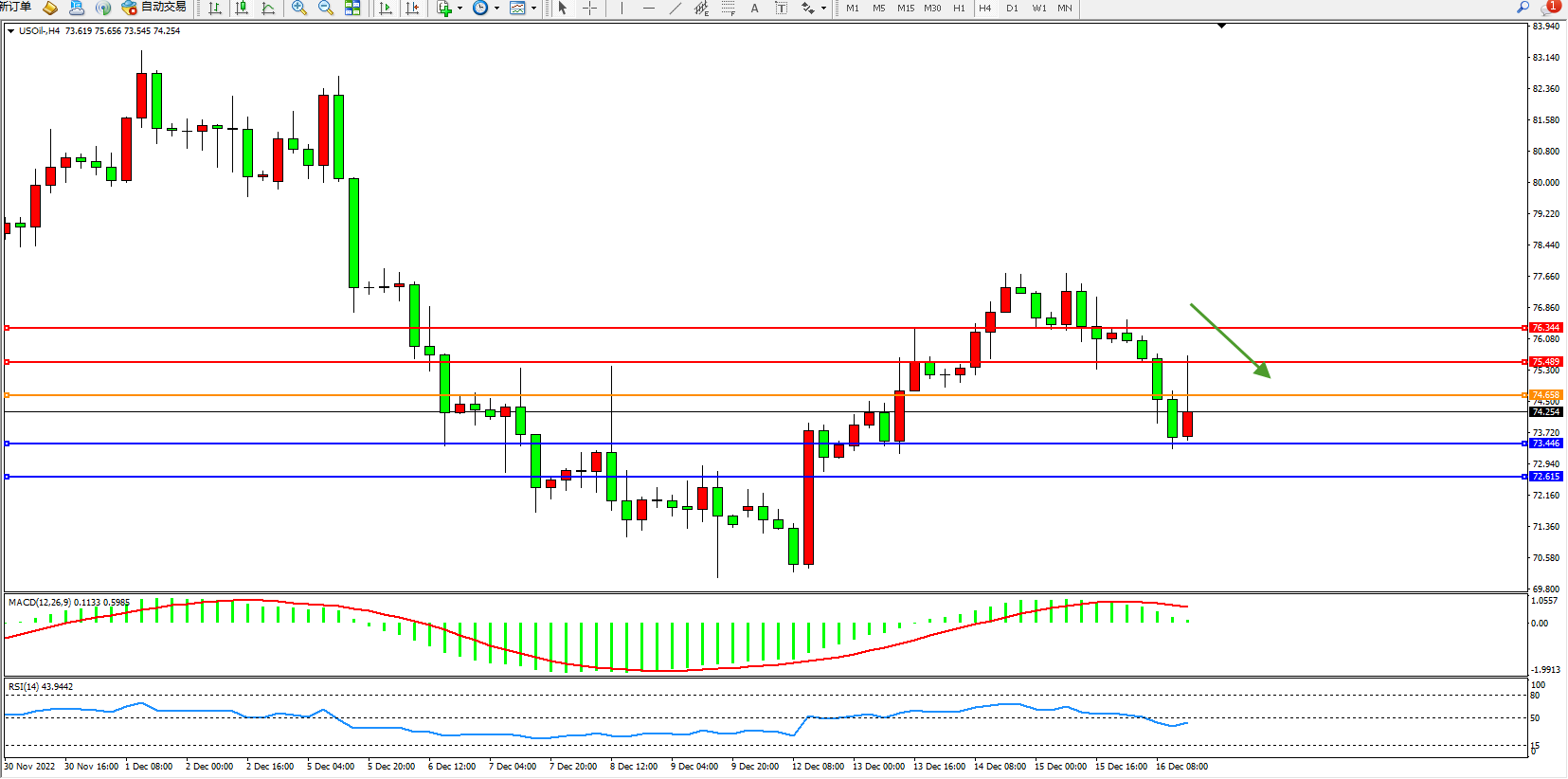 原油维持74.254附近震荡,市场对经济衰退的担忧加剧,石油一周涨幅收窄。全球股市走低,因为担心各国央行继续对抗通胀的决心将使经济陷入衰退。