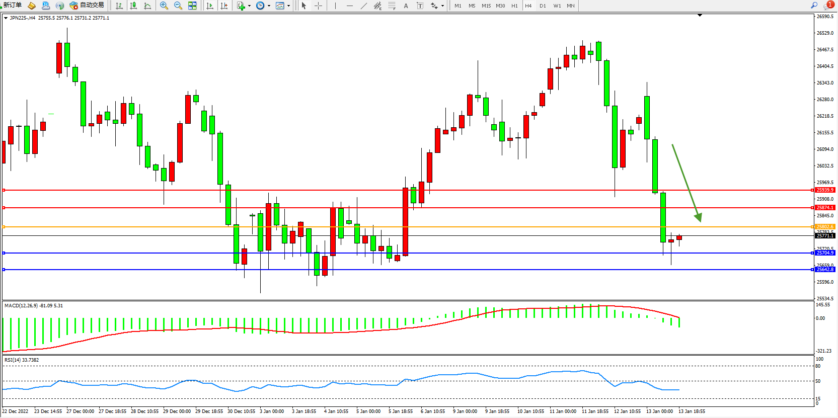 日经225指数1月13日(周五)收盘下跌361.32点,跌幅1.37%,报26088.50点。日本内阁官房长官松野博一当天正式宣布,日本通常国会将于1月23日举行。本次会议为期150天,如无延期,将于6月21日结束。