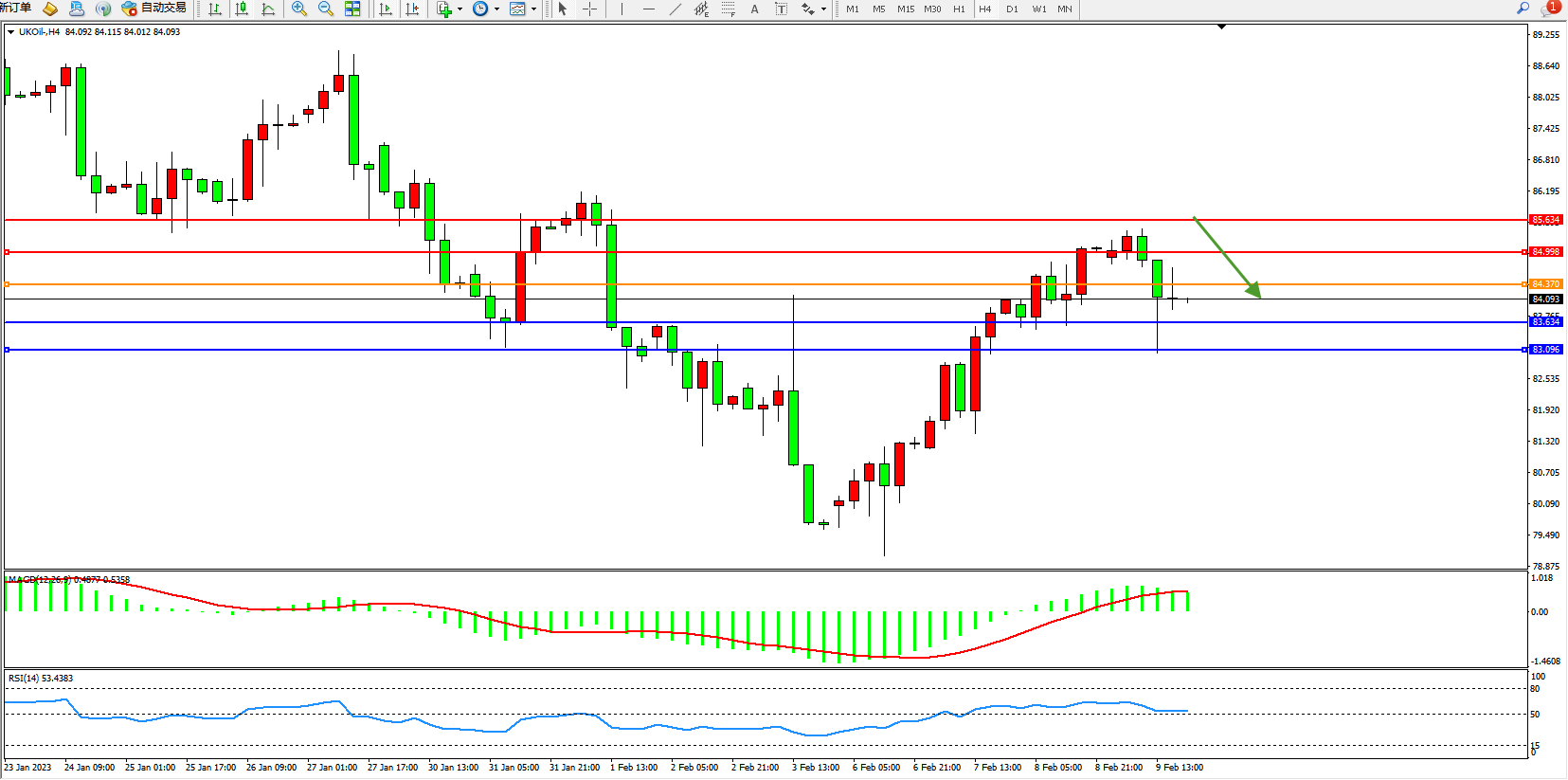 4小时图看:高位空头动力反转震荡下移,市场空头情绪开始涌现,短期有继续向下移动态势,MACD指标处于多头区域维持整理,RSI指标处于50均衡线上側弱势徘徊中;