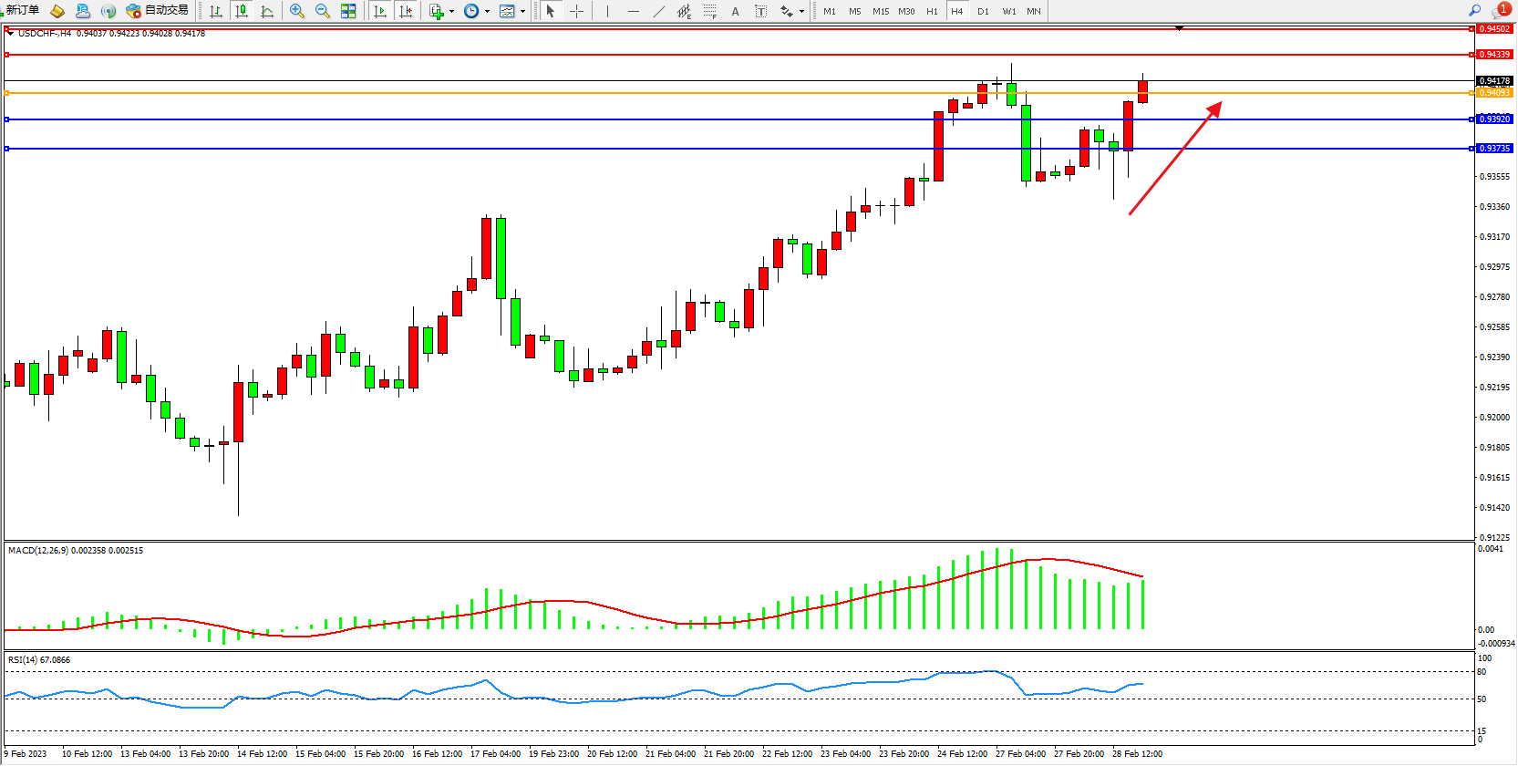 交易策略:0.94093上方看涨,目标0.94339、0.94502