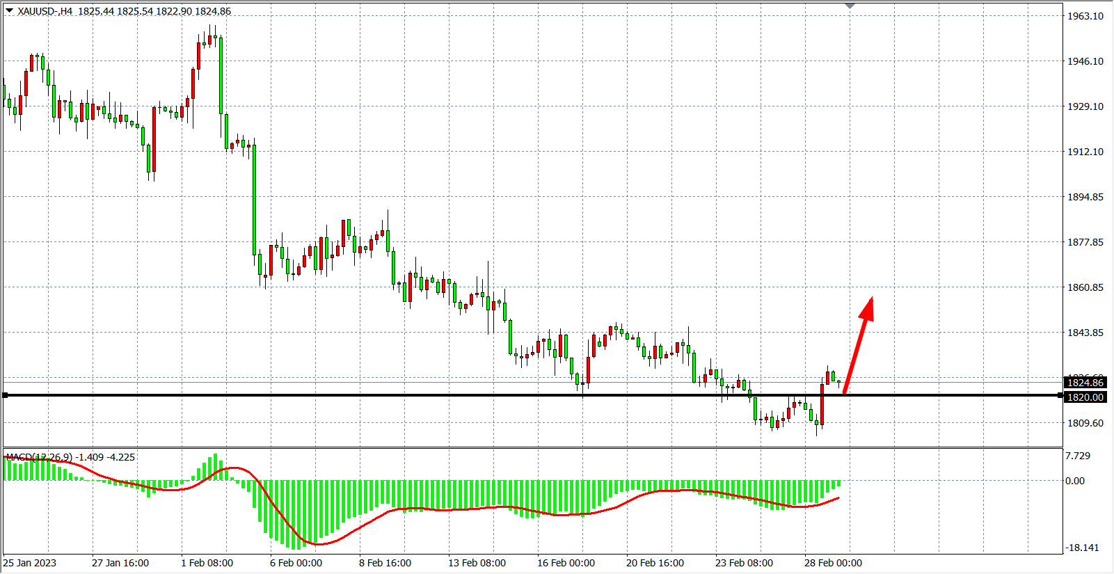 交易策略:在1820.00 之上看涨,目标1840.00         1860.00