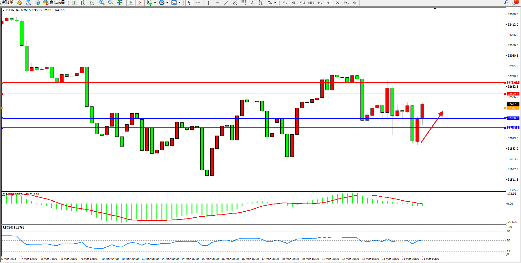 道琼斯指数3月24日(周五)收盘上涨132.90点,涨幅0.41%,报32238.15点;市场对美联储放缓升息预期升温,导致美元本周初期持续走软,在美联储鸽派加息之后,美元释然回升。美联储仅温和加息25个基点,尽管美国通胀和劳动力市场仍然紧张。