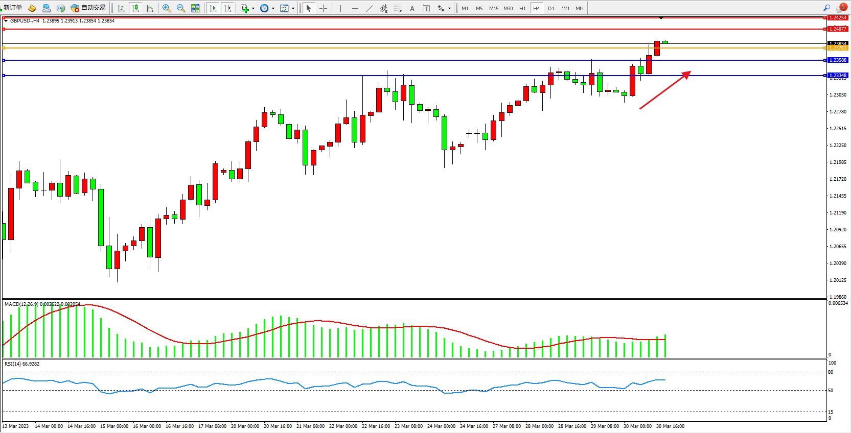 英镑兑美元维持1.23854附近震荡,预计英国央行现在将结束加息周期,但未来几周的数据对5月的利率决定仍然极其重要。预计未来几个月美联储和欧洲央行还将加息25个基点。这种政策分歧应该会继续令英镑承压.
