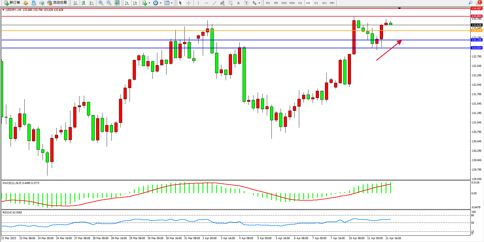 美元兑日圆维持133.628附震荡,日本新任央行行长植田和男发出了暂时不太可能调整货币政策框架的信号,但考虑到通胀率和工资水平趋势,日本央行依然更有可能紧缩货币政策。