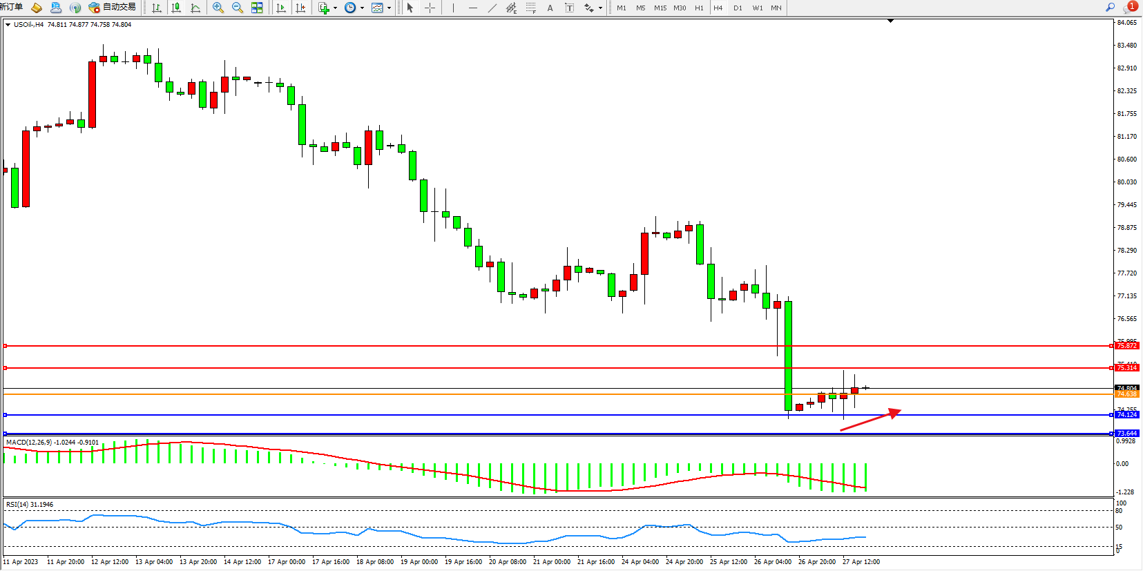 原油维持74.804附近震荡,市场仍担心美国经济衰退和俄罗斯石油出口增加削弱了石油输出国组织及其合作伙伴(OPEC+)的减产效果。