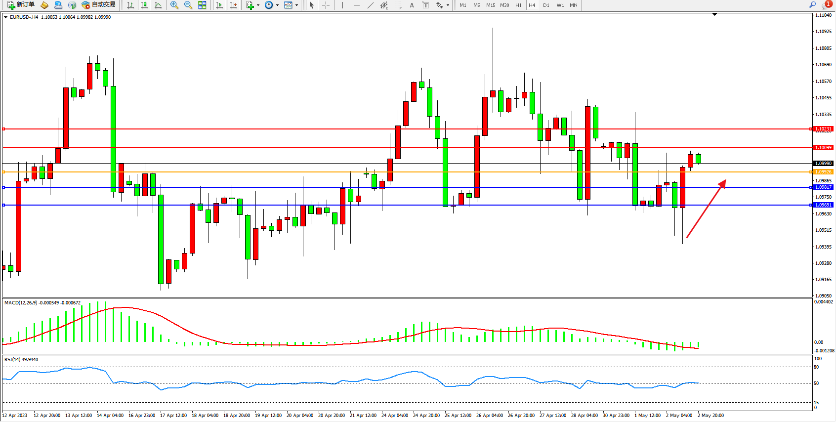 交易策略:1.09926上方看涨,目标1.10099  1.10231