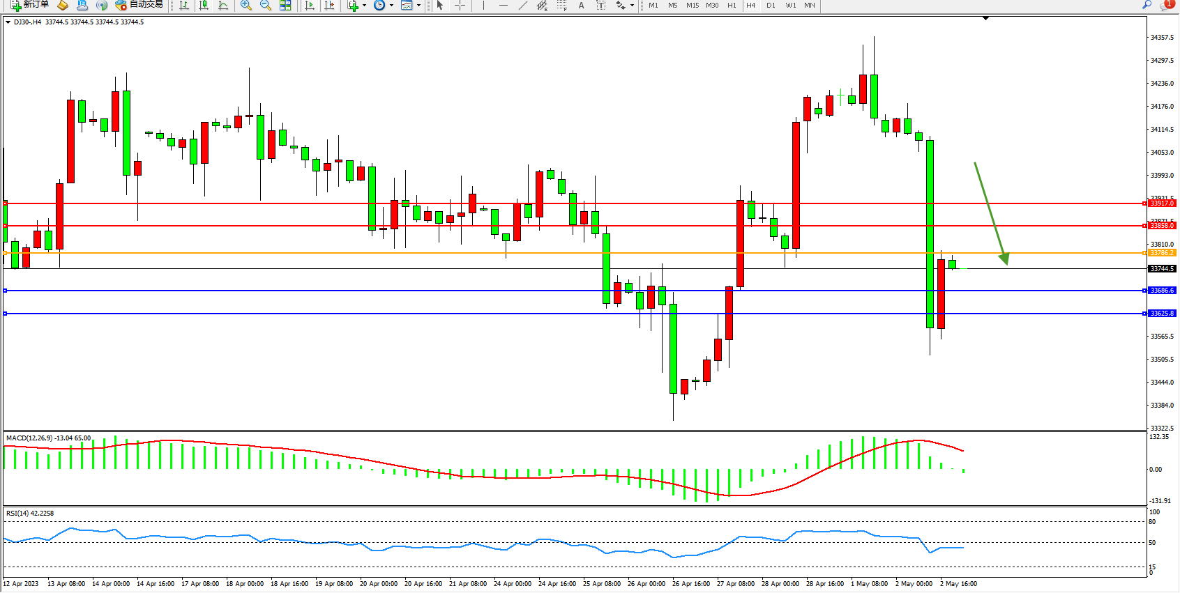 道琼斯指数5月2日(周二)收盘下跌367.24点,跌幅1.08%,报33684.46点;纽约证交所将立即暂停第一共和银行的股票交易,并将第一共和银行的8只证券摘牌。