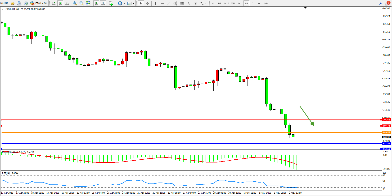 原油USOil——4小时K线图显示: