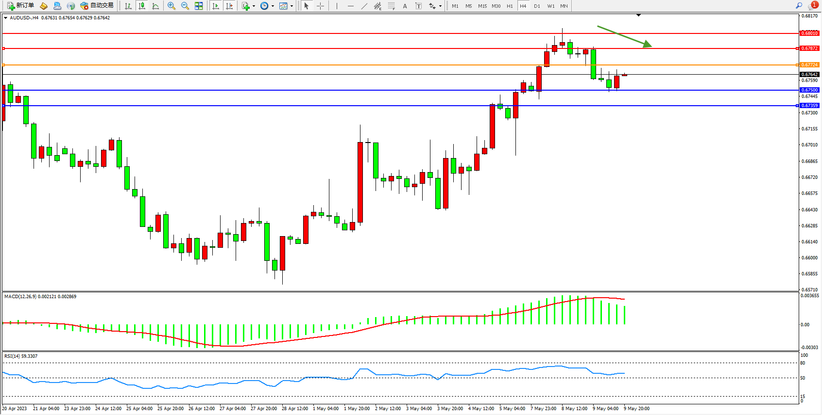 备选策略:0.67724上方看涨,目标0.67872 0.68010