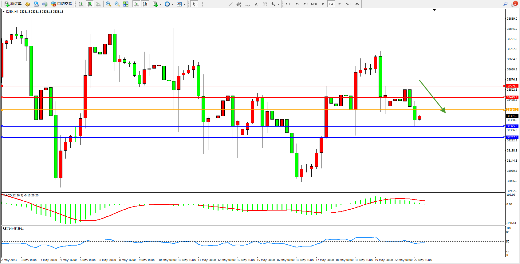 道琼斯指数5月22日(周一)收盘下跌140.08点,跌幅0.42%,报33286.55点;纽约联储数据显示,联邦基金利率市场,飙升至至少是七年来的最高水平,表明随着银行在过去两个月的地区银行动荡期间提前偿还借款,联邦住房贷款银行可能坐拥更多超额现金。