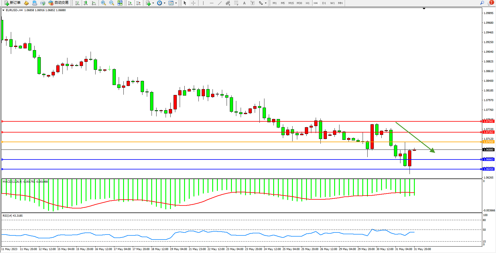 交易策略:1.07050下方看跌,目标1.06663  1.06450