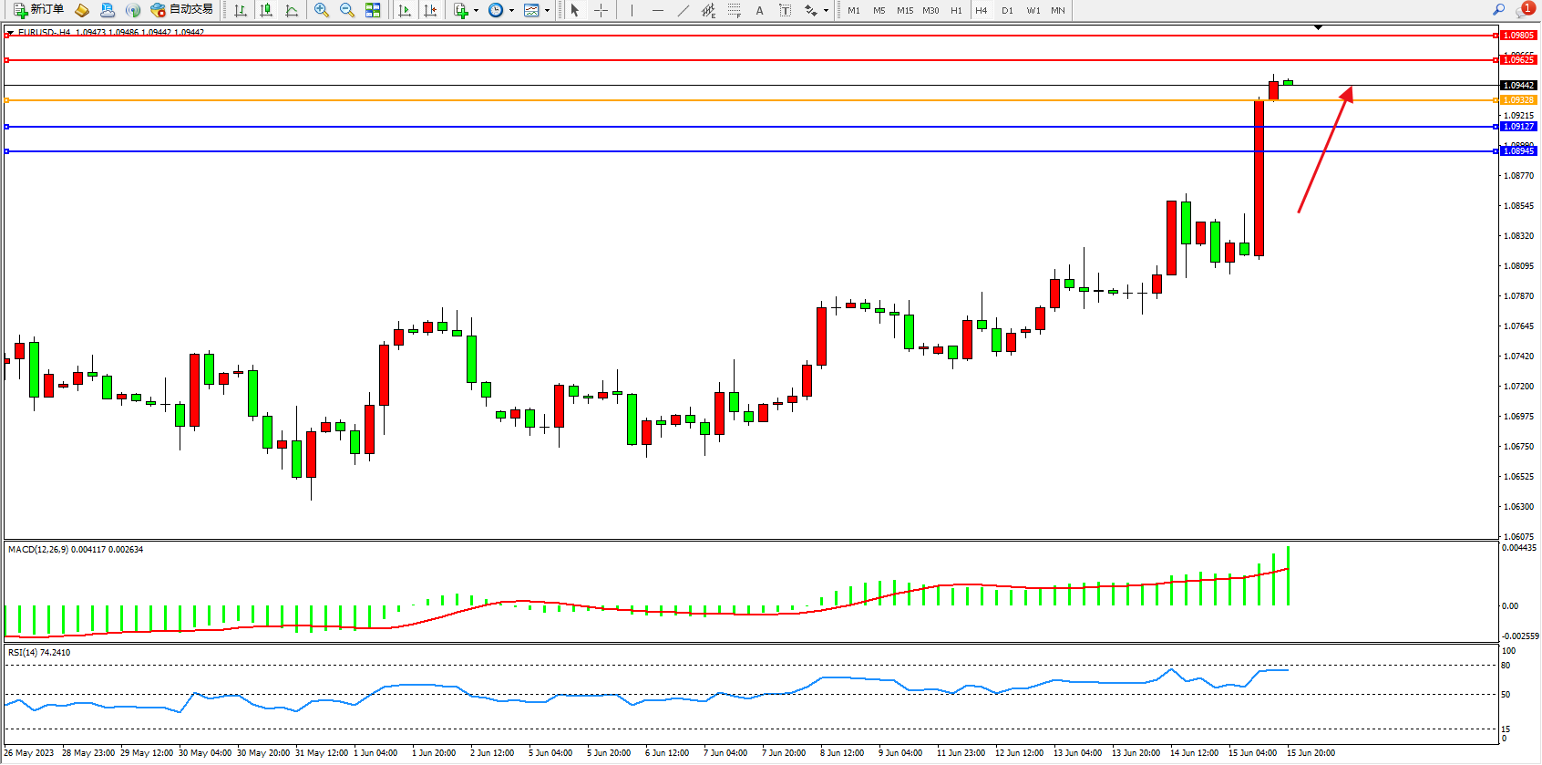 4小时图看:高位短期看涨情绪依旧,市场多头不断上扬中,MACD指标处于多头区域高位上移,RSI指标处于多头区域高位整理;
