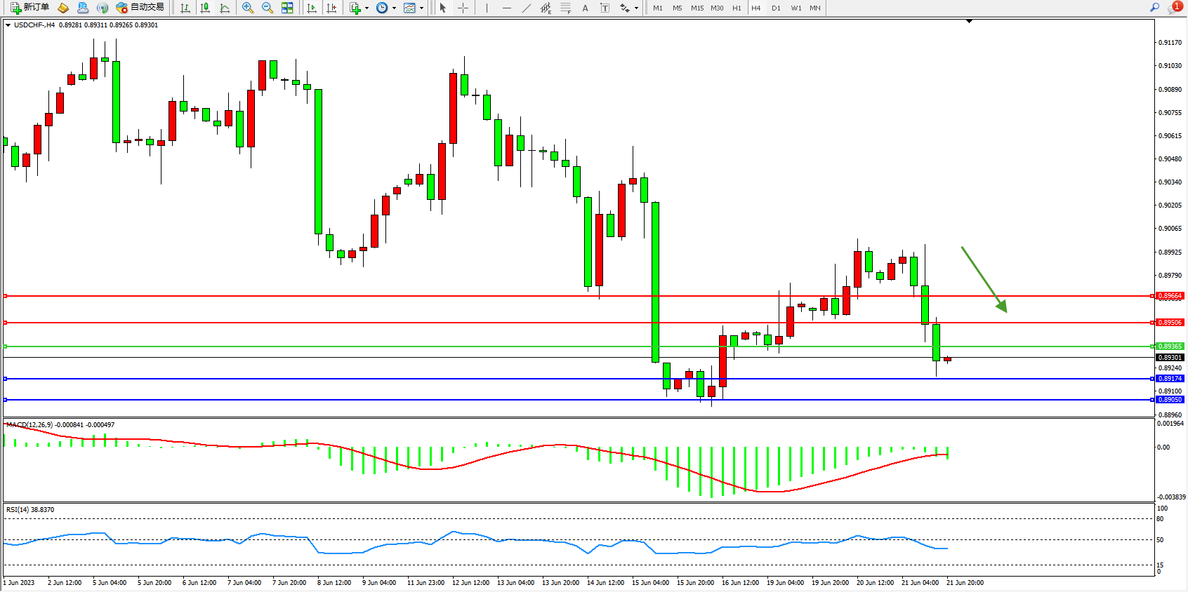 交易策略:0.89365下方看跌,目标0.89174  0.89050