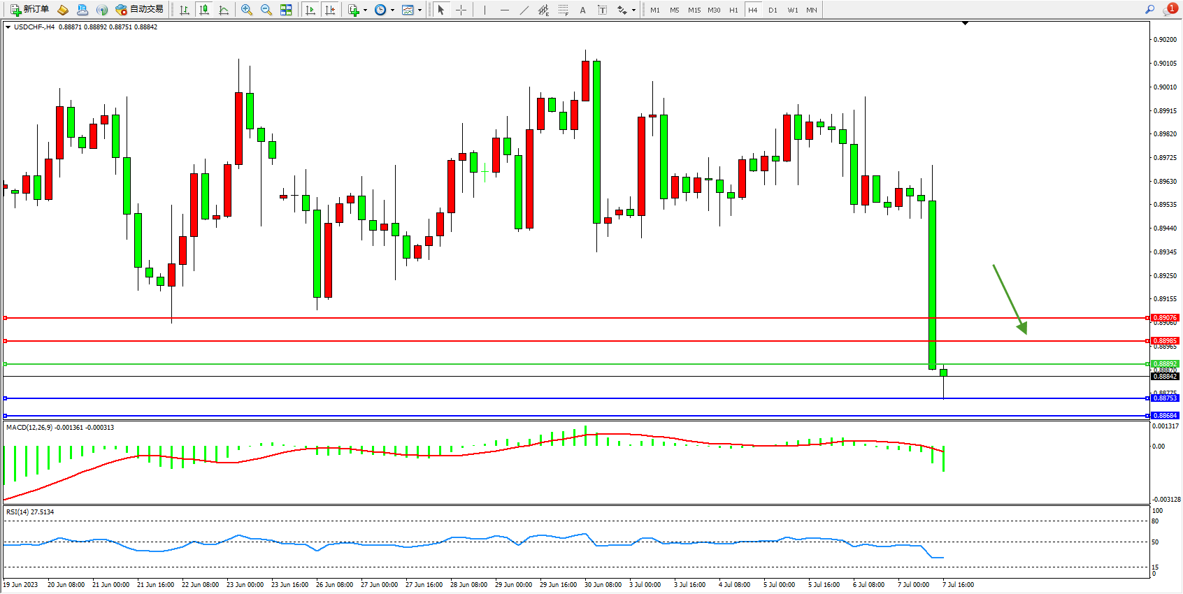 交易策略:0.88892下方看跌,目标0.88753 0.88684