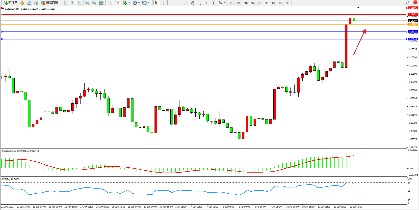 4小时图看:多头动力高位强势攀升,市场看涨情绪持续,短期多头不断拉升中,MACD指标处于多头区域高位上移,RSI指标处于多头区域高位整理;