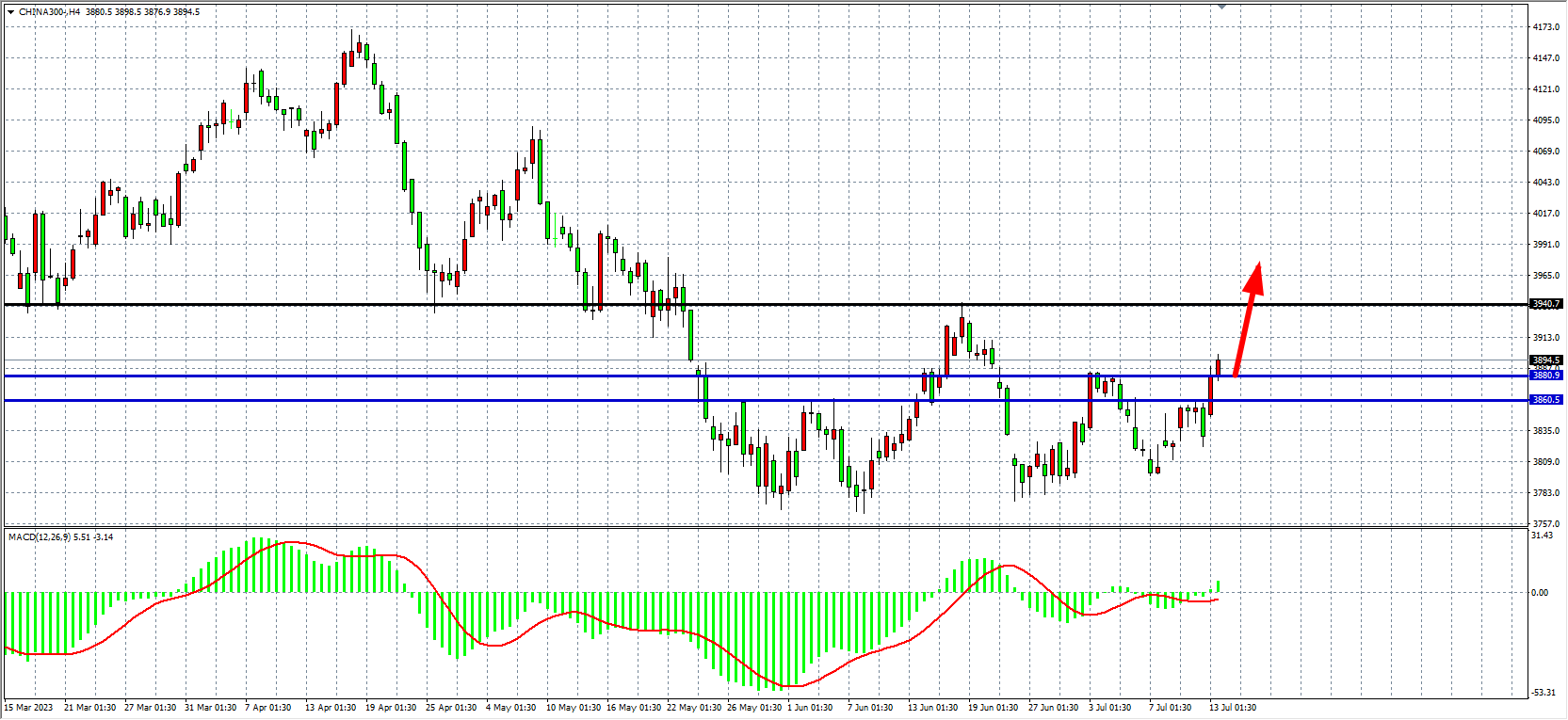 4小时图看,沪深300进一步上破3880,MACD开始上穿零轴,行情反攻基调明显,当前支撑上移至3860-3880附近,上方压力3940-4000。
