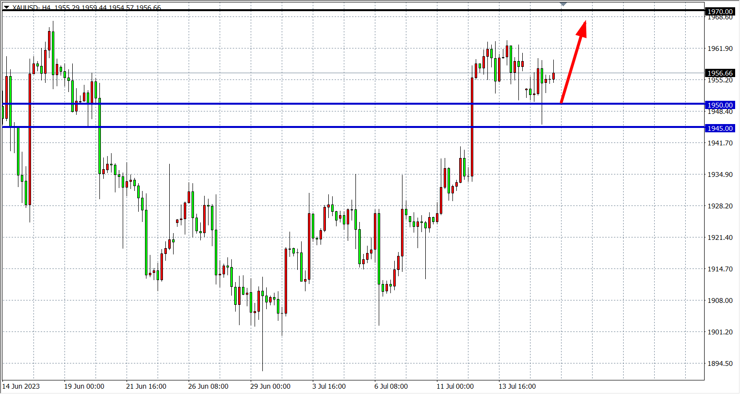 周一(7月17日)公布的纽约联储制造业指数降至1.1%,显示其制造业增长几乎停滞,市场押注通胀下行趋势成立,美国有望避免“硬着陆”,现货黄金一度因美元指数和美债收益率转涨而承压,盘中一度跌近10美元并失守1950美元关口,收盘重回该关口上方,小幅收跌0.02。展望后市,市场静待将于今晚公布的美国6月零售销售数据。