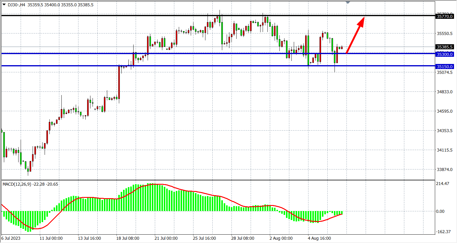交易策略:35300 上方看涨,目标 35770 36100