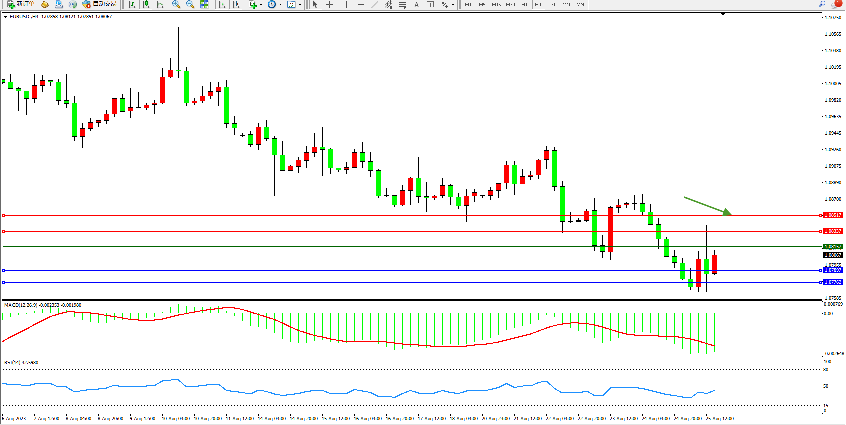 交易策略:1.08157下方看跌,目标1.07897 1.07762