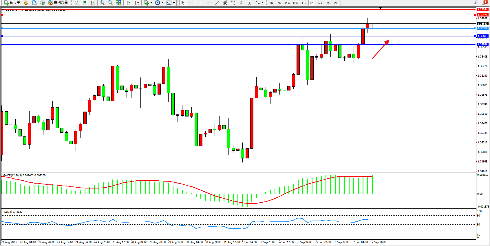 4小时图看:高位多头动力维持震荡上移,市场看涨情绪笼罩,短期有继续向上移动态势,MACD指标处于多头区域高位整理,RSI指标处于多头区域维持震荡;
