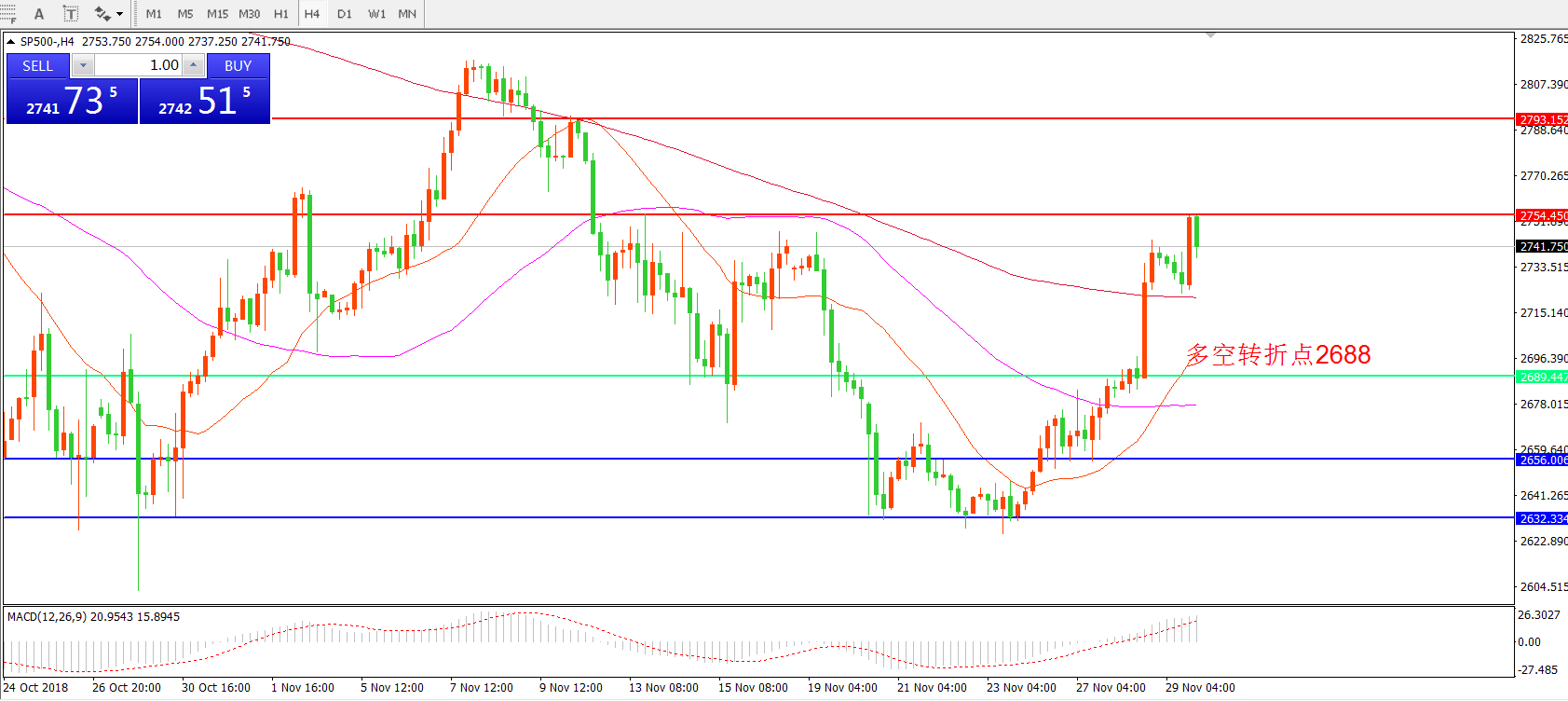 标普500 SP500 4小时图: