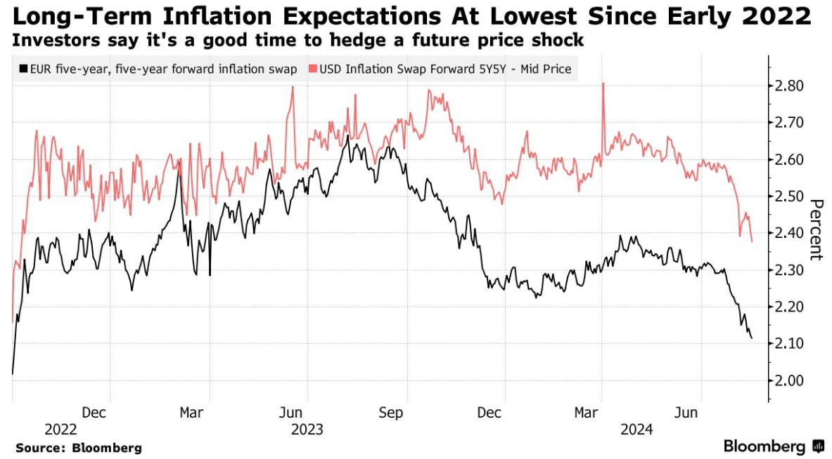 Robeco全球宏观固定收益策略师 Martin van Vliet 也指出了这种风险。他正在考虑结束一笔从30年期欧元通胀互换从去年9月的2.80%左右跌至目前的2.30%中获利的交易。