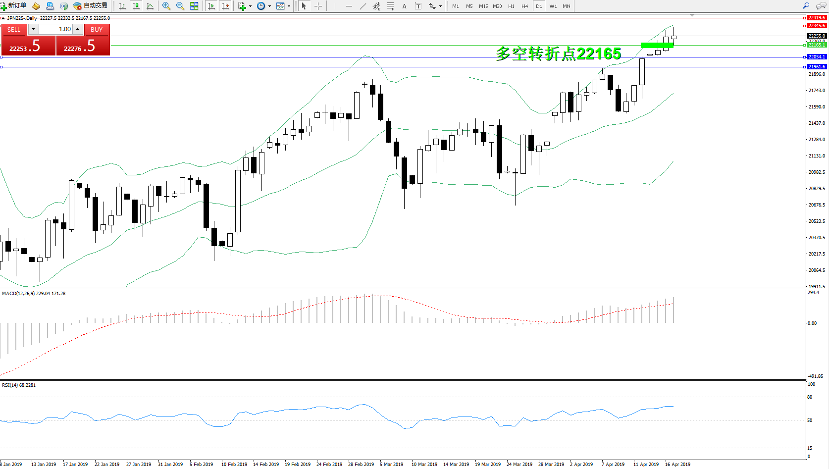 交易策略:22165上方看涨,目标2234522419