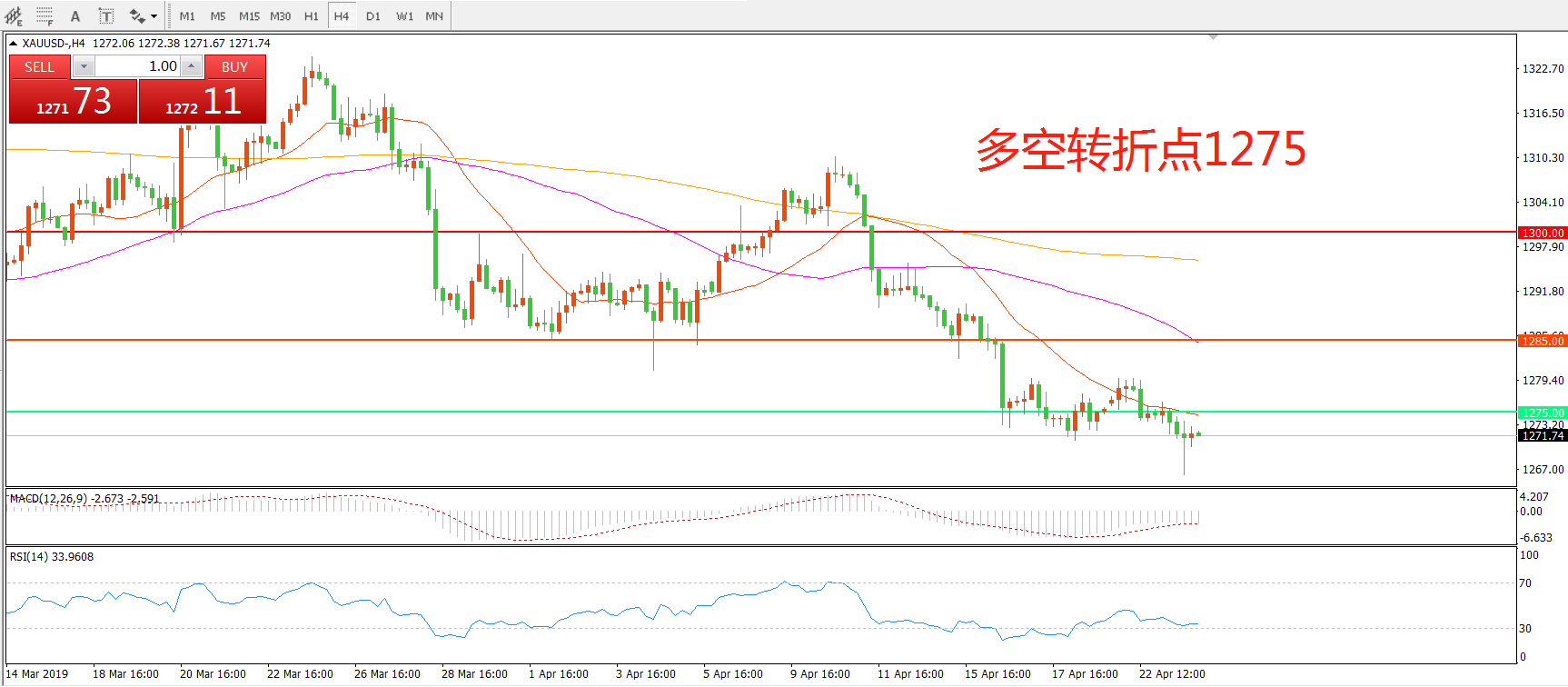 多空转折点:1275.00