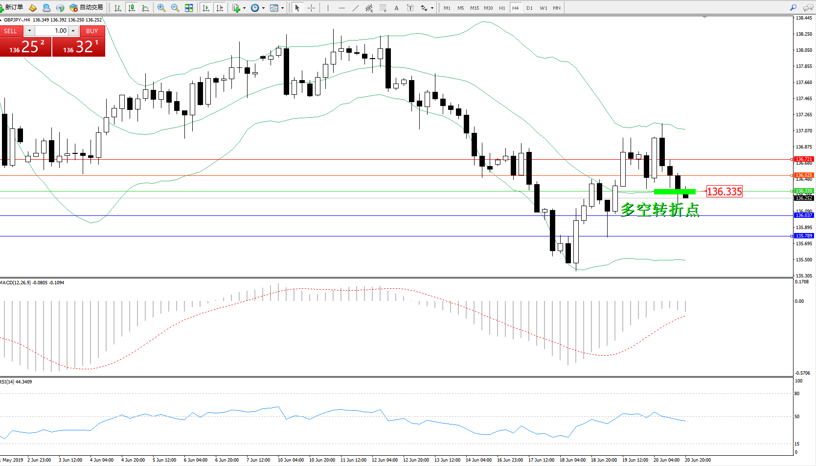 交易策略:136.335下方看跌,目标136.037、135.789