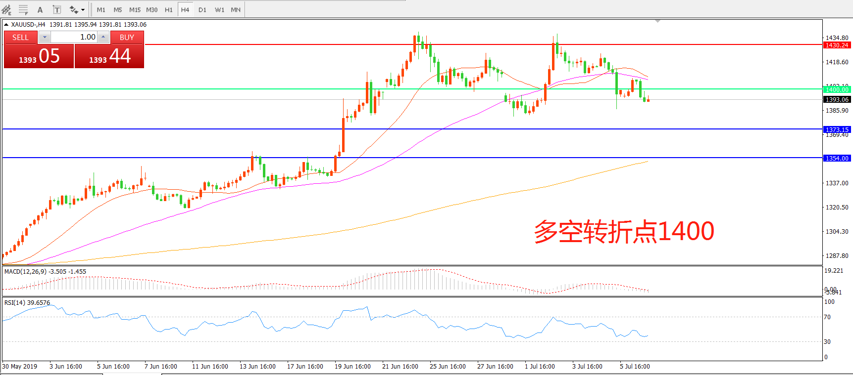 交易策略:在1400.00之下看跌,目标1373.00 1354.00