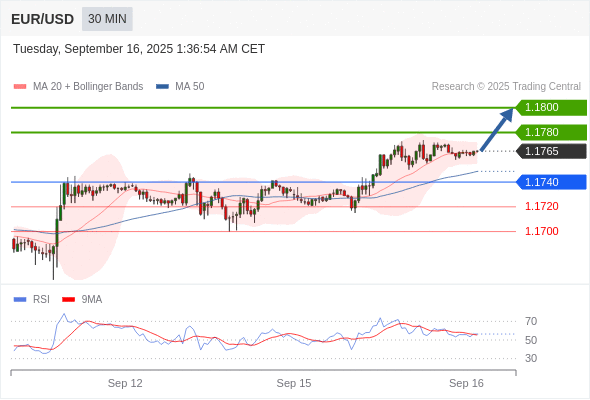 交易策略: 在 1.1740 之上,看涨,目标价位为 1.1780 ,然后为 1.1800 。