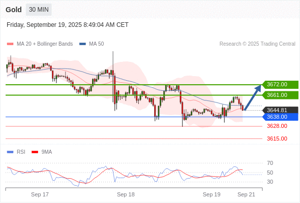 在 3638.00 之上,看涨,目标价位为 3661.00 ,然后为 3672.00 。