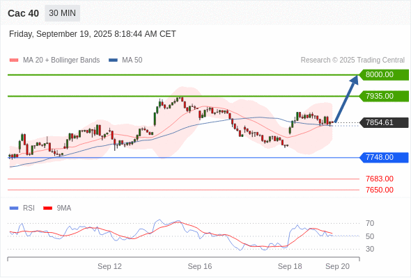 在 7748.00 之上,看涨,目标价位为 7935.00 ,然后为 8000.00 。