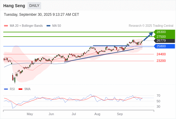 恒生指数 短线: 看涨。
