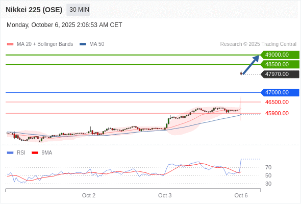 日经225股指期货 (OSE) 当日内: 在47000.00之上,看涨。