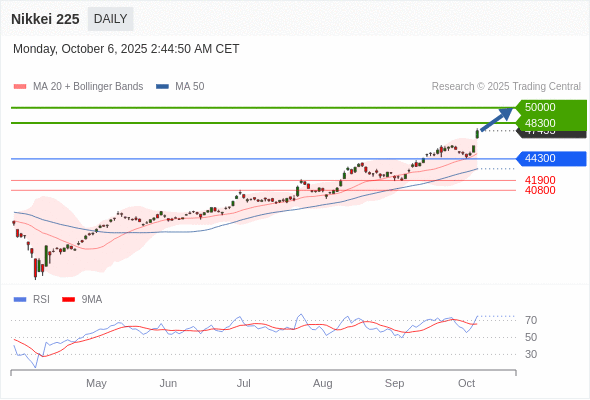 Nikkei 225 短线: 期待50000。