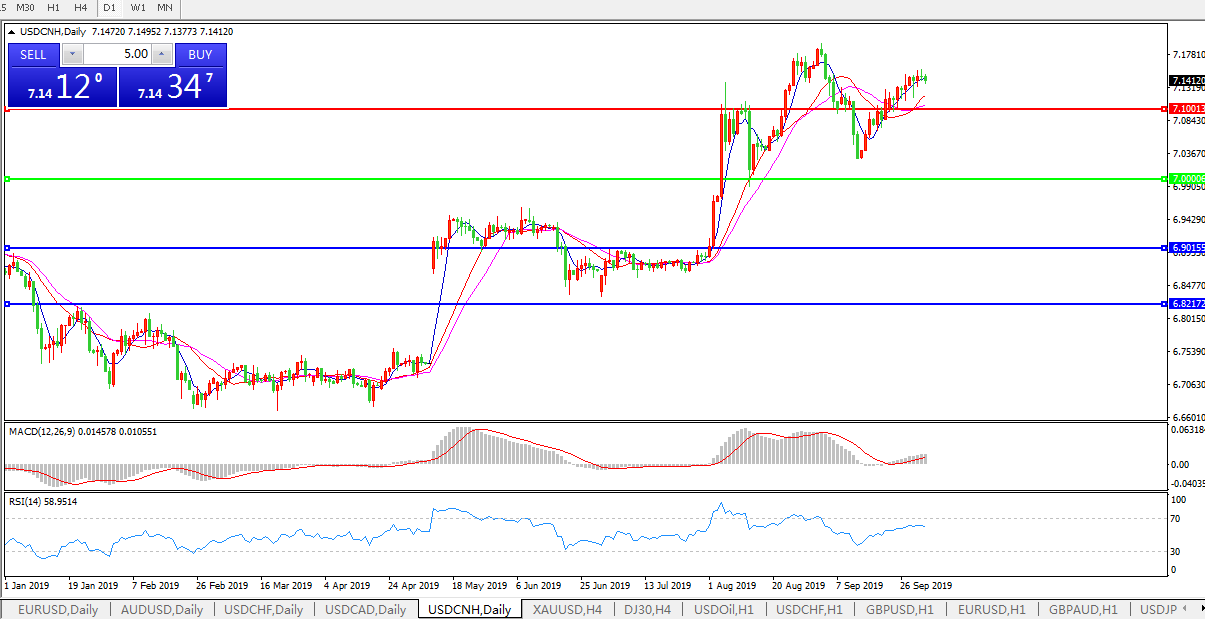 技术面简析:日图短期均线延续攻势,汇价站稳7.10关口并保持攻势,MACD再度走升且有放量迹象,RSI升势趋缓,预计短期汇价有进一步上行空间,上方重点关注7.20-7.30区间的压制;中美贸易谈判进展须持续关注。