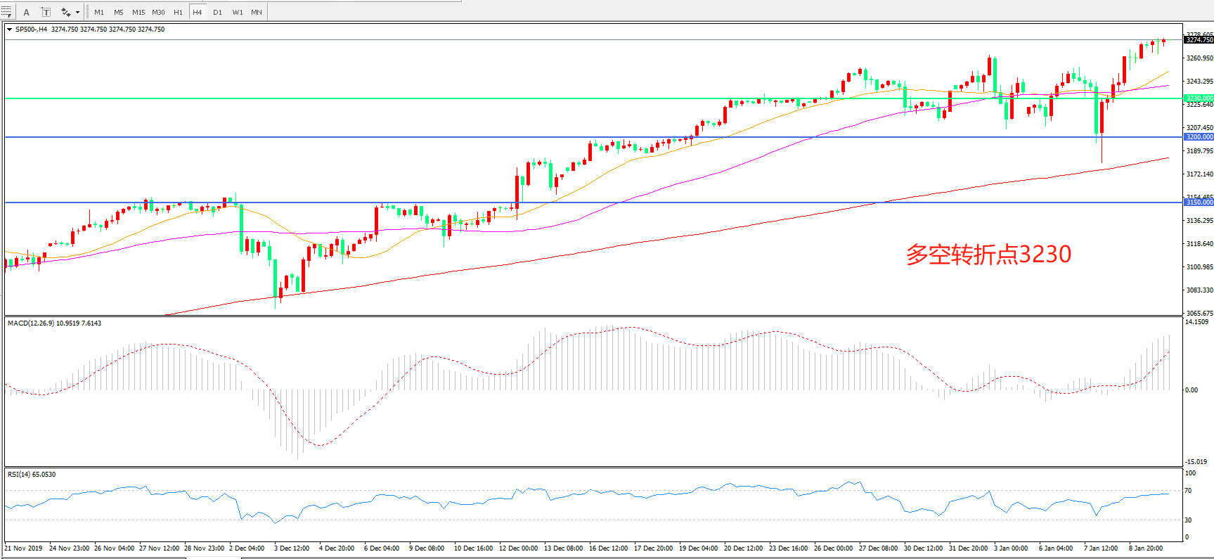 周四(1月9日),美国总统特朗普在讲话中表现温和,声称美国准备好与所有寻求和平的人一起拥抱和平;国务院副总理、中美全面经济对话中方牵头人刘鹤将于13日-15日与美方签署第一阶段经贸协议。双方团队正在就协议签署的具体安排密切沟通,中东地区缓和与中美贸易局势缓和利好股市上升,美国三大股指全线上涨,再创历史新高,标普500收报3274.75点。