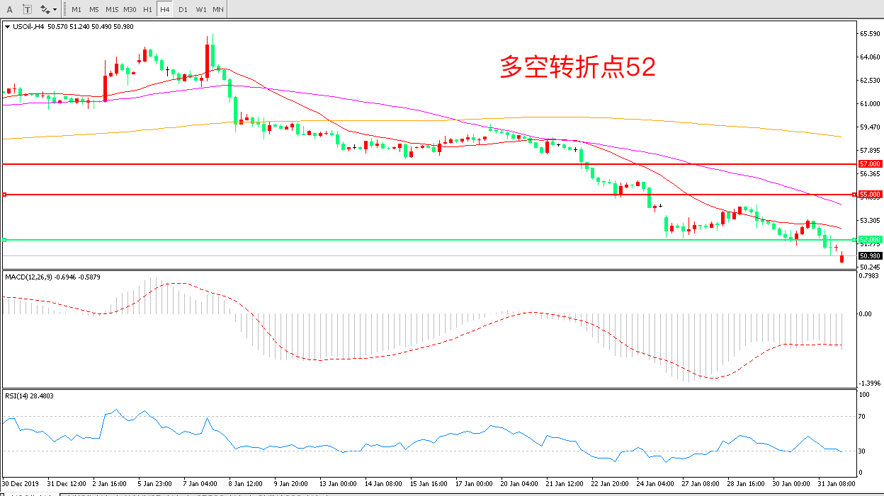 交易策略:在52.00之下看跌,目标49.00         45.00