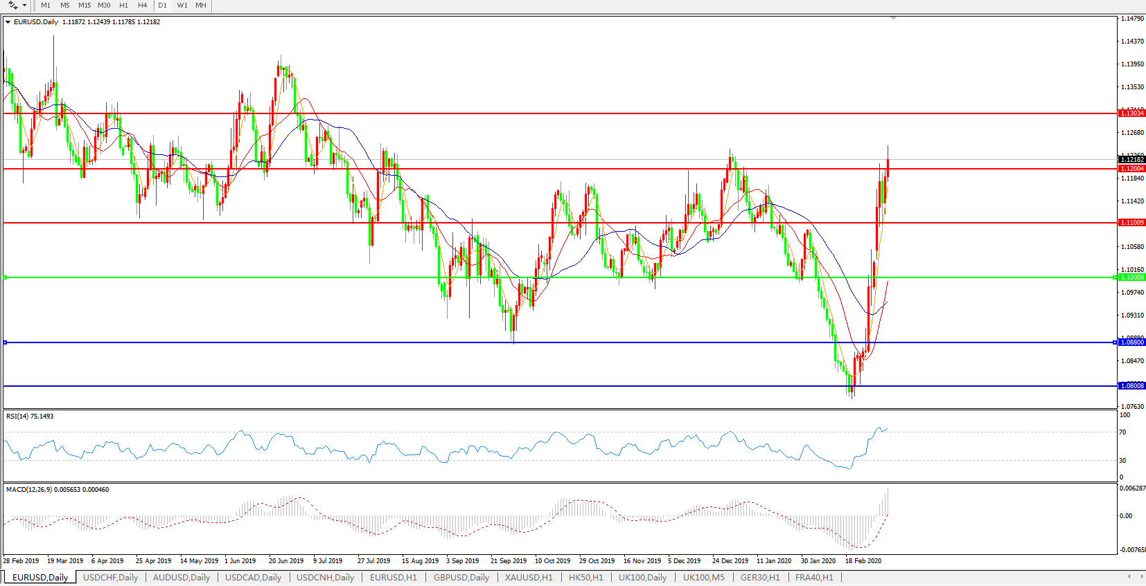 交易策略:1.1000上方看涨,目标1.1100、1.1200、1.1300
