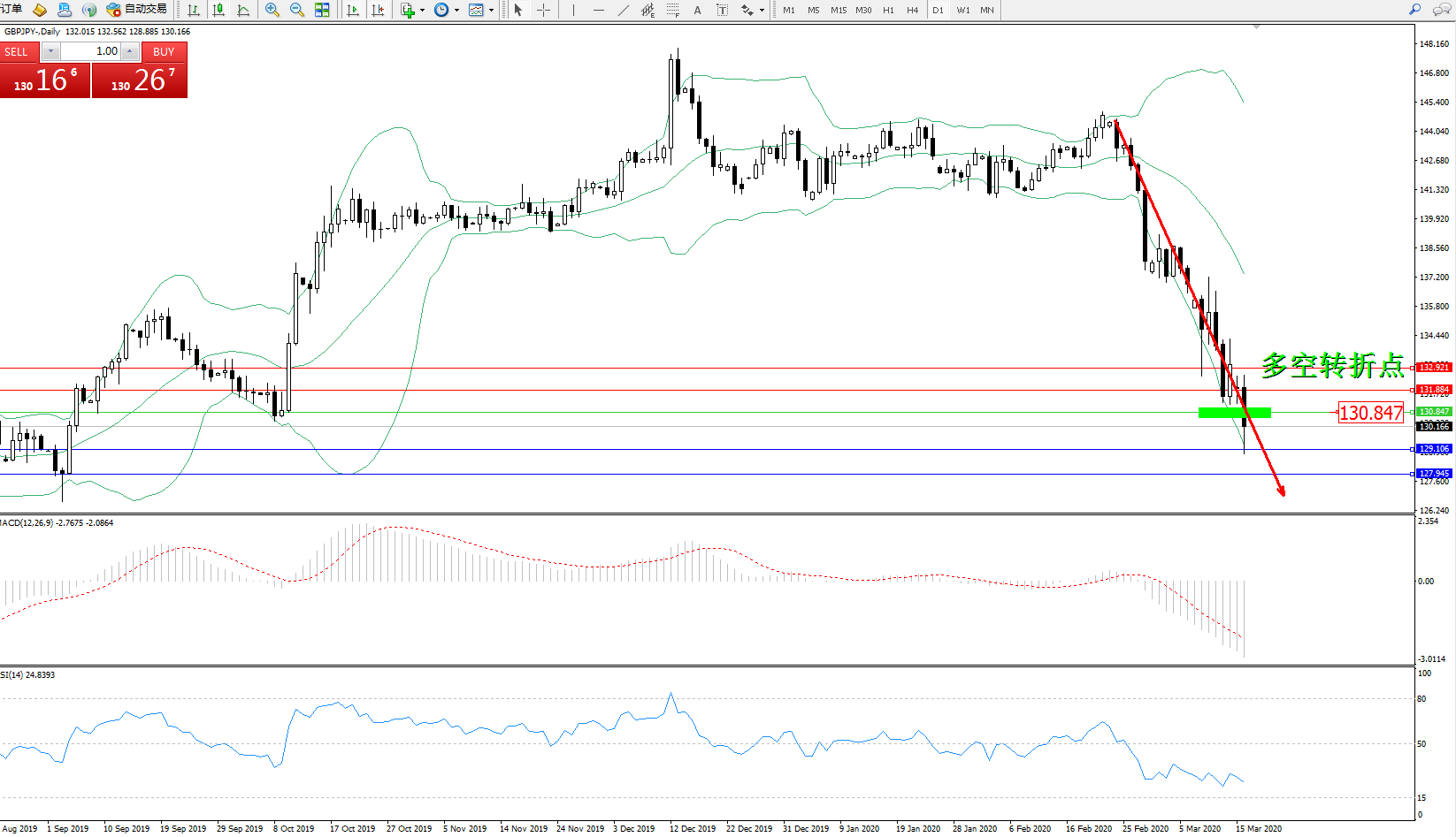 英镑兑日元现报130.32,涨0.39%;经历了华尔街恐怖的一周之后,终于等来好消息,这可能标志着危机终结的开始。美国和欧盟出台财政刺激计划,且美国和欧洲多国宣布进入国家紧急状态,同时多家央行实施了紧急降息。美联储紧急降息100个基点,加拿大央行9天内第二次紧急降息50点,新西兰联储紧急降息75点,英国央行预计也将进一步放宽货币政策。在全球股市暴跌和英国经济出现放缓迹象的背景下,。英国央行宣布将银行业者的逆周期资本缓冲(CCB)由1%调降至0%,并出台一项新方案,以支持对小型企业的放款,这两个动作都是为了维持借贷畅通。