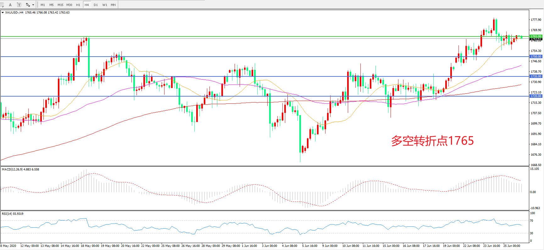 交易策略:在1765.00之上看涨,目标1780.00 1800.00
